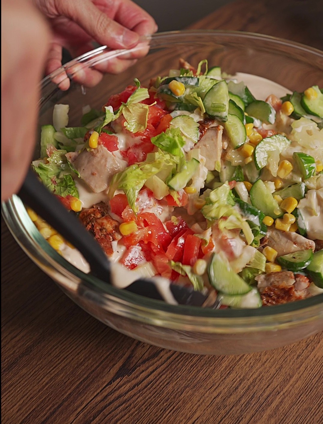 スパイスチキンと野菜とヨーグルトソースを和えます